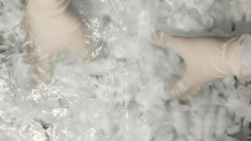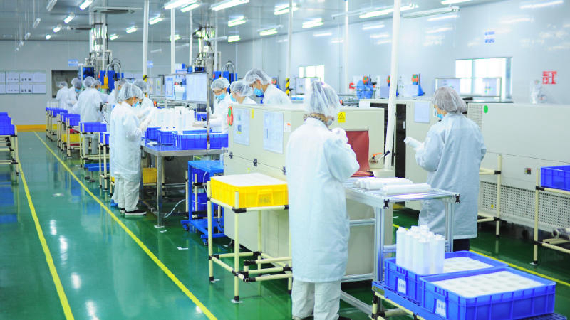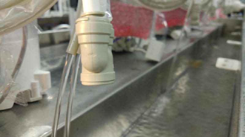 ▲这是在用纯净水清洗其中一个零件,还需要消毒并再次清洗。所有清洗、检测的纯净水都是通过大型纯净水制造设备生产的。