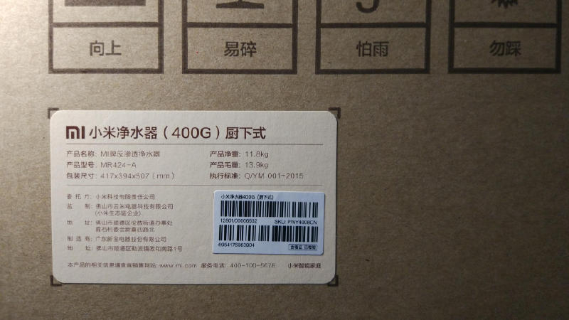 ▲厨下式小米净水器的外箱铭牌,看看编号,不知道你们谁能拿到这一台呢