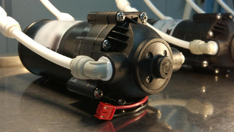 ▲这是为400加仑反渗透滤芯提供过滤动力的增压泵,它输出的压力达到0.8Mpa,相当于8公斤水压,是正常自来水压的4倍(正常的自来水只有2-3公斤)。增压泵会经过电器性能和密封性检测,合格后才能上线生产。