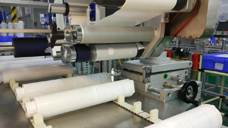 ▲然后通过全自动贴标设备,粘贴滤芯贴纸
