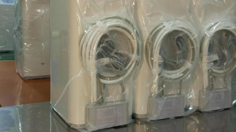 ▲出货运输会将净水器都用保鲜膜残绕保护,并在四个角上都做好防护。确保运输中不会对包装箱造成损坏。