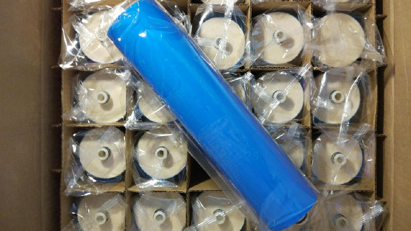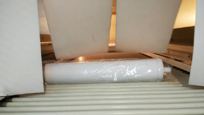 ▲这就是过滤的核心部件,RO反渗透滤芯。展开以后过滤膜片跟纸一样,通过肉眼根本看不到过滤孔。