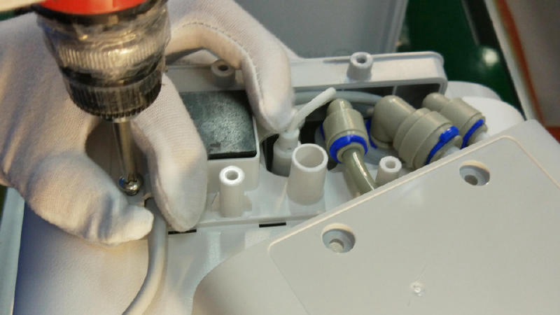 经过杀菌后,开始抽出管路内部的残留水,组装外观件,并进行整机功能复测。