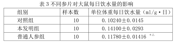 而另一个实验则表明:普通人参单位体重每日饮水量显著高于人参玉竹组。